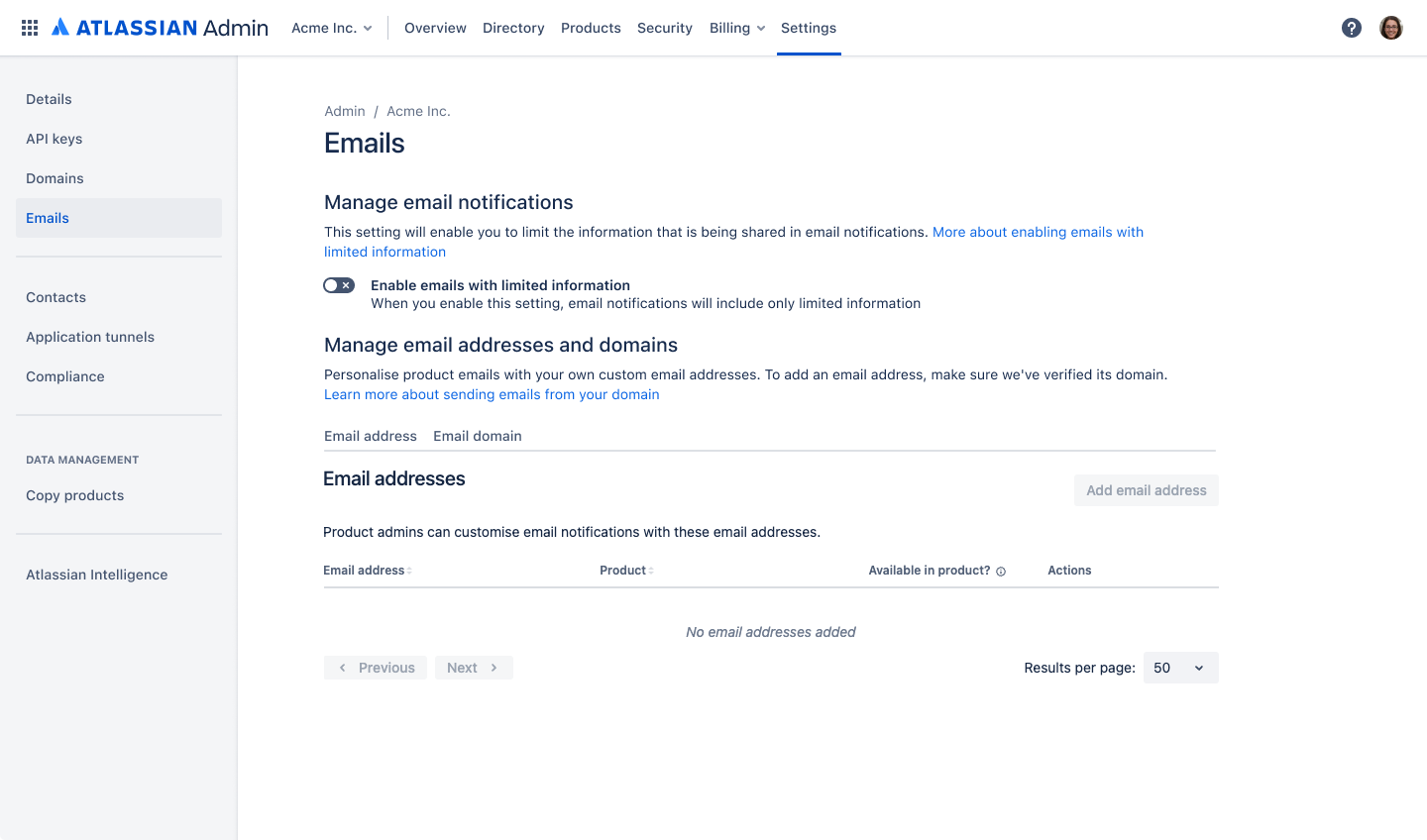 Redesigned the email controls experience in Atlassian AdminHub to better align with data privacy controls.